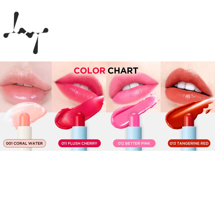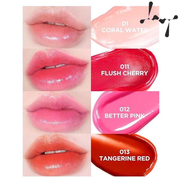 رنگ‌های این محصول شفاف هستند، یعنی لب را رنگی می‌کنند اما سنگین و غلیظ دیده نمی‌شوند.