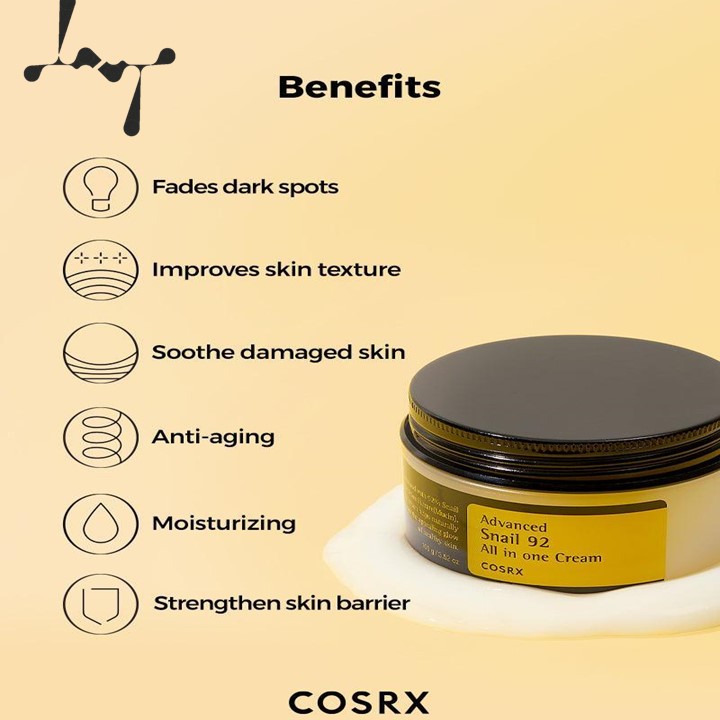 کرم حلزون از برند کوزارکس (COSRX) یک مرطوب‌کننده تخصصی برای آبرسانی عمیق، ترمیم و جوان‌سازی پوست است. این کرم با عصاره مخلوط اسید هیالورونیک و ترشحات حلزون، سلول‌های پوست را بازسازی کرده و به کاهش چین‌وچروک، لکه‌های سطحی و بهبود بافت پوست کمک می‌کند. بافت سبک و مغذی آن به سرعت جذب شده و پوست را نرم، شاداب و مرطوب نگه می‌دارد.